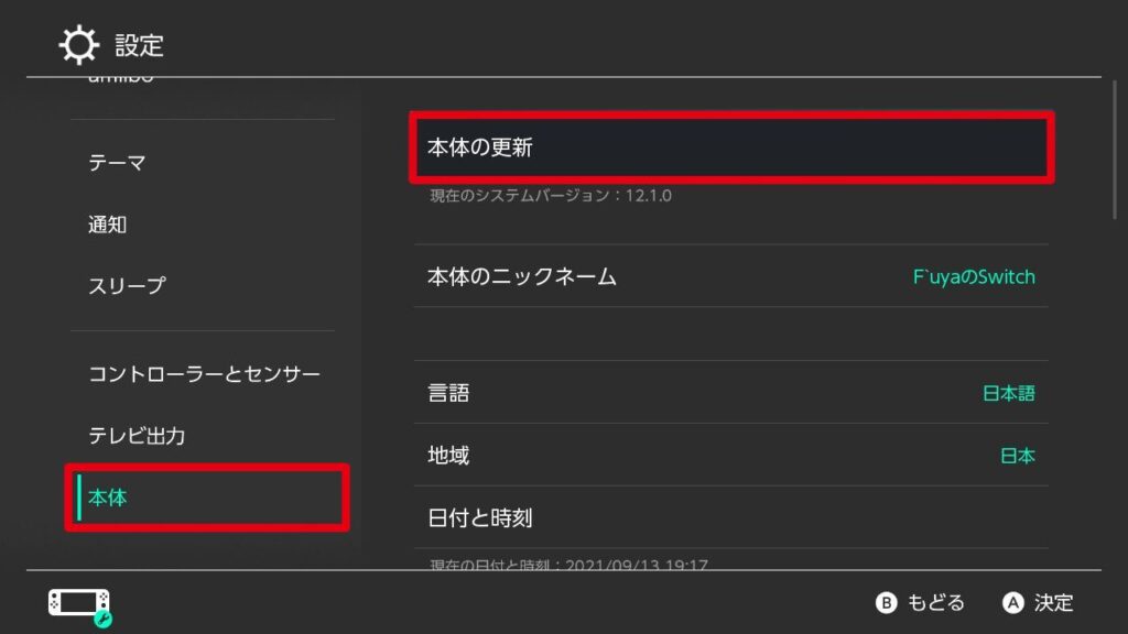 【Nintendo Switch】 本体更新 確認方法