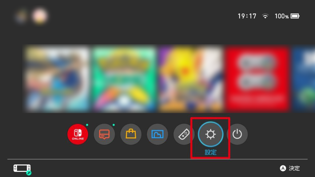 Nintendo Switch本体がインターネットに接続されている事を確認し、Homeメニューの「設定」を選択