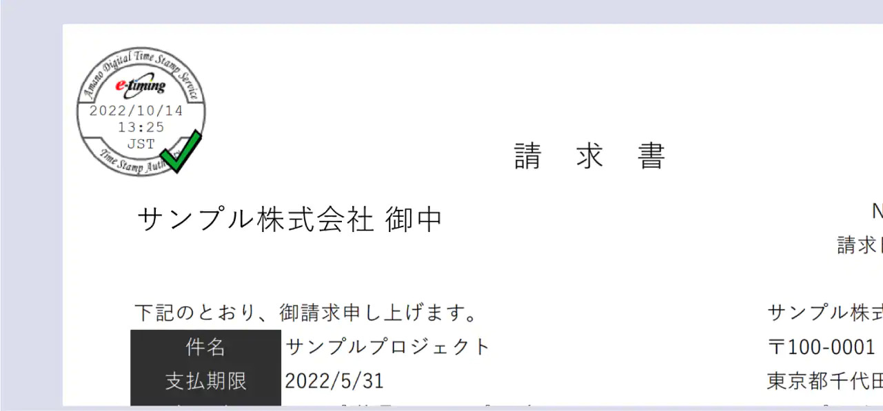 タイムスタンプは、ファイルが偽装されていないかを証明するための機能です。 PDF ファイルの存在証明をすることができます。 さらに、タイムスタンプが正規のものであるか、確かめるための検証機能も搭載しています。