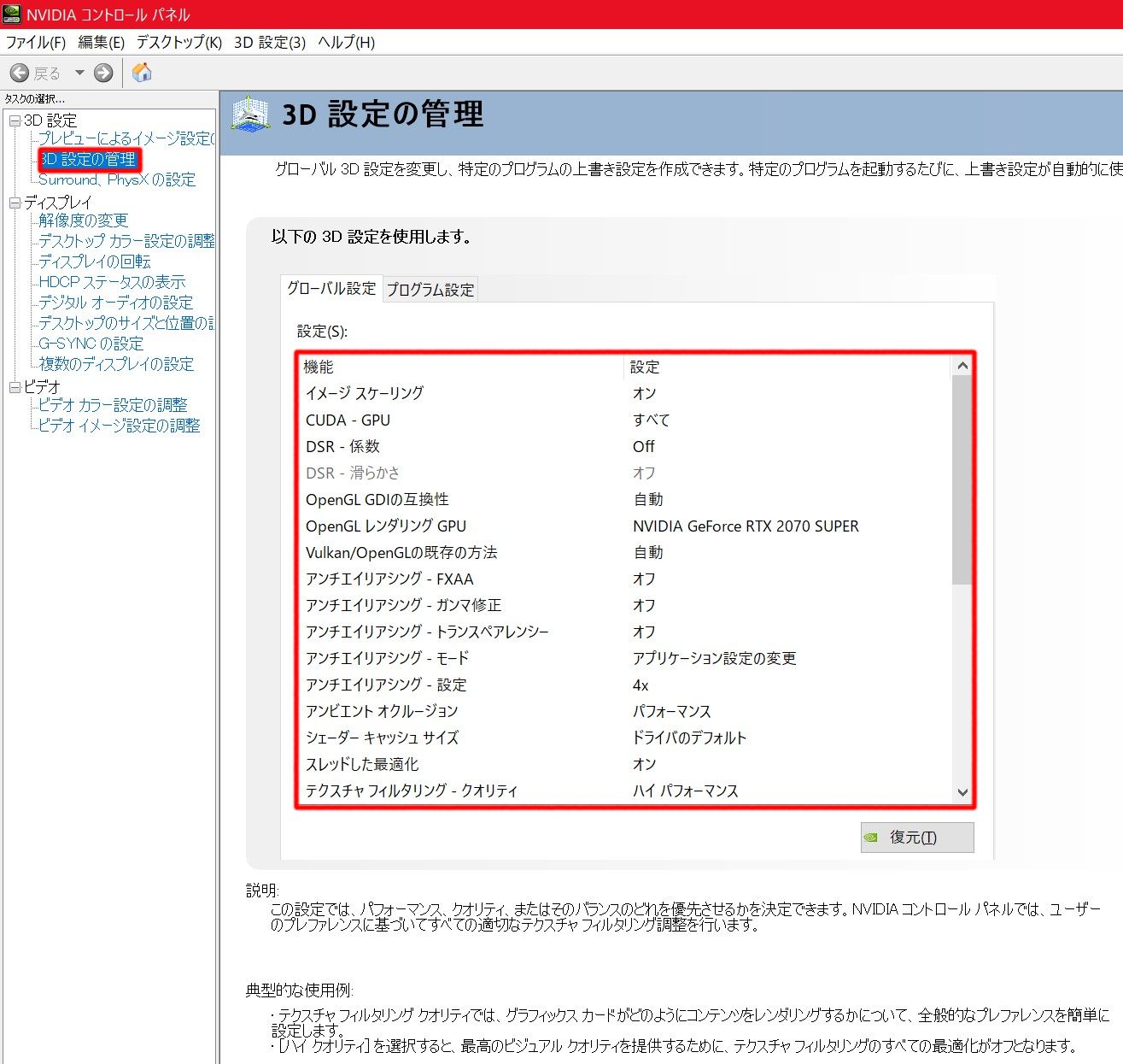 一概にグラフィックの設定と言っても、人それぞれコンピューターの構成が違うので「この設定が絶対に正しい!」とも残念ながら言い切れません。