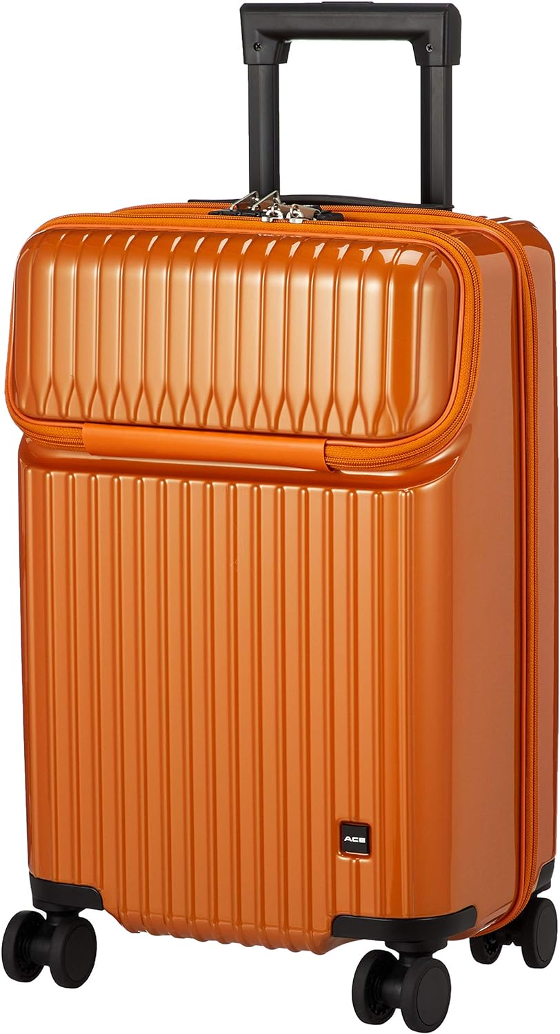 キャスターストッパーとフロントポケットがついた ACE の便利なスーツケース。