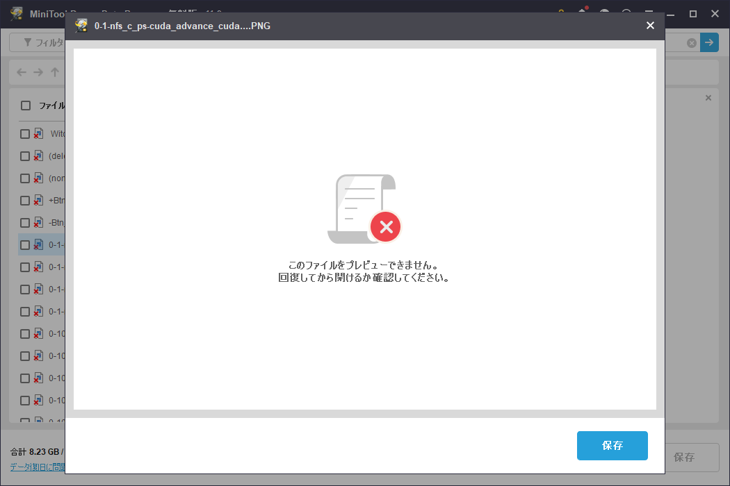 ファイルのプレビュー機能ですが、中にはプレビューに対応した拡張子であっても、プレビューできないファイルもありました。