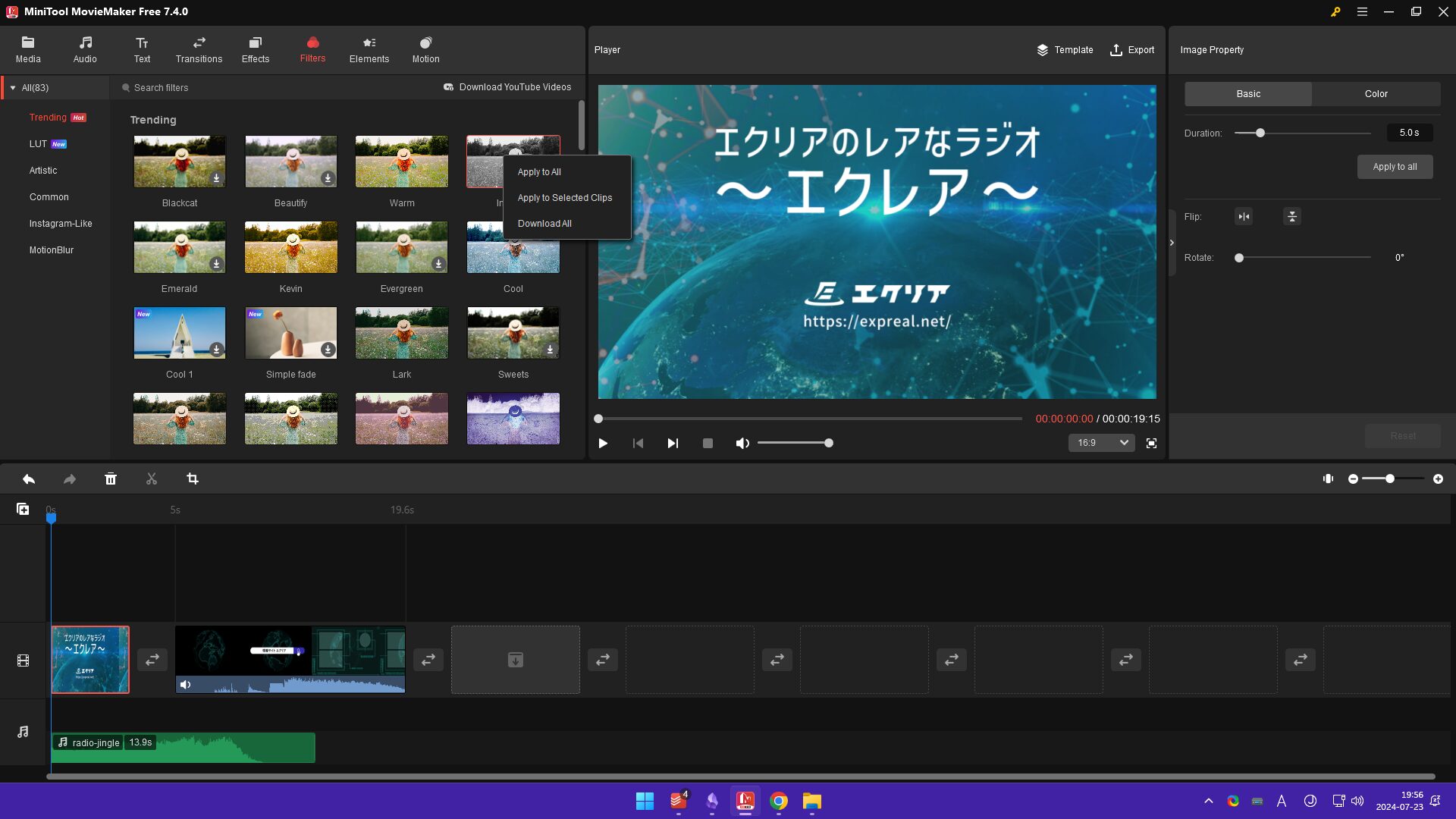 MiniTool® MovieMaker は、動画や画像を含め複数の素材に対して、色味の変更やエフェクトを一括で適用することができます。