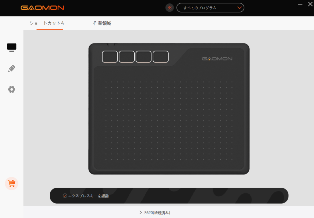 GAMON S620 PenTablet には、専用アプリケーションがあり、下記のような設定が可能です。