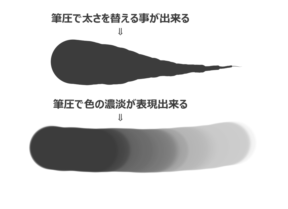 使用者の書き易い様に筆圧の設定が可能が可能です。