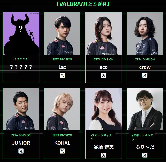 VALORANT とちぎ杯では、下記画像の通り ZETA DIVISION から 5 名の選手がゲストとして登場します。また、e スポーツキャスターもゲストとしてお迎えしており、大会ならではの熱い実況が繰り広げられるのではないでしょうか。