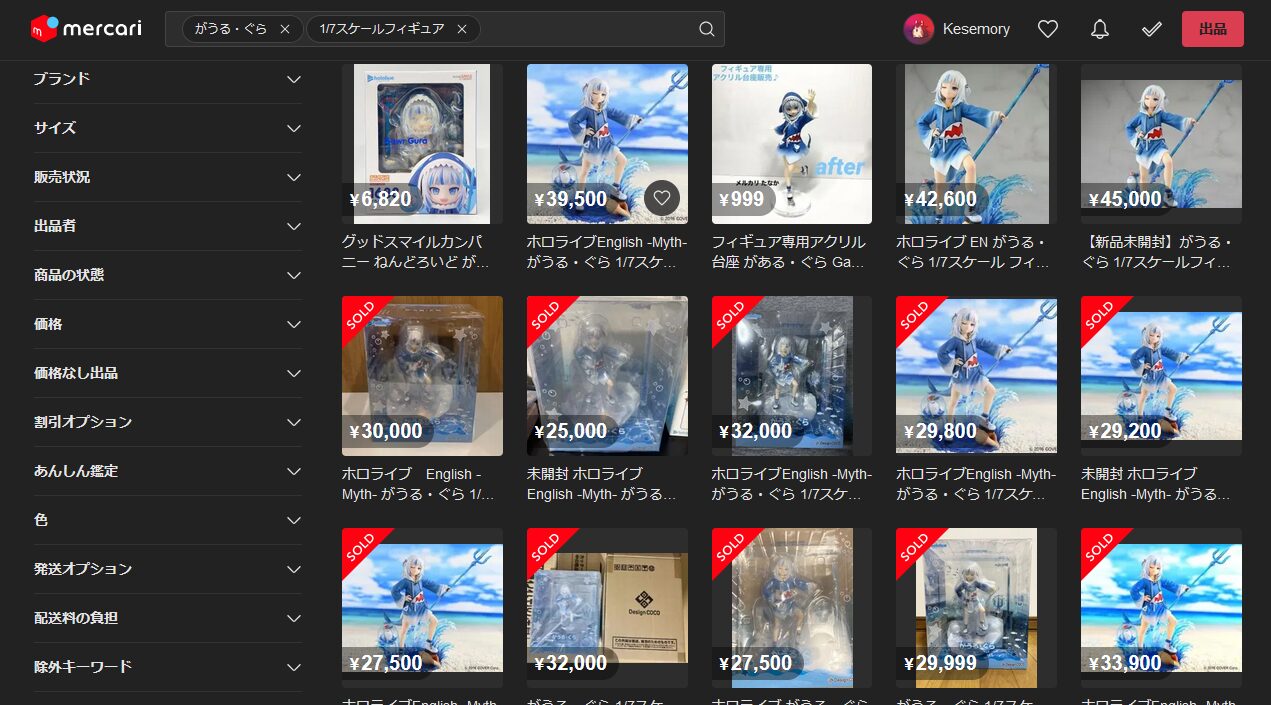 下記画像の通りフリマサイトにおいては、定価よりも高い値段で販売されていることが多く、このスケールフィギュアのレアさを物語っています。そのため、定価で新品が購入できる数少ない機会と言えるでしょう。
