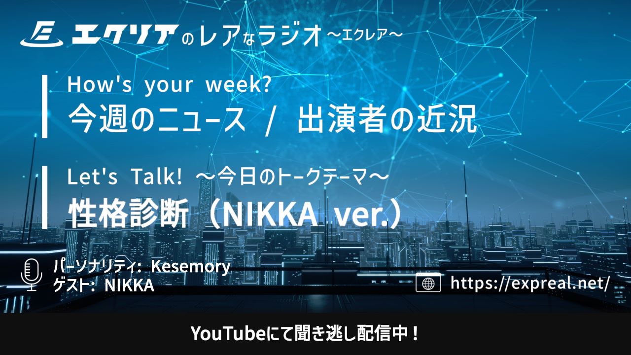 2024 年 11 月 2 日(土)20:00 より配信を行いました、エクリアのレアなラジオ ~エクレア SEASON2~【第 14 回】の聞き逃し配信を行っております。 Express Reality【エクリア】では、… 続きを読む